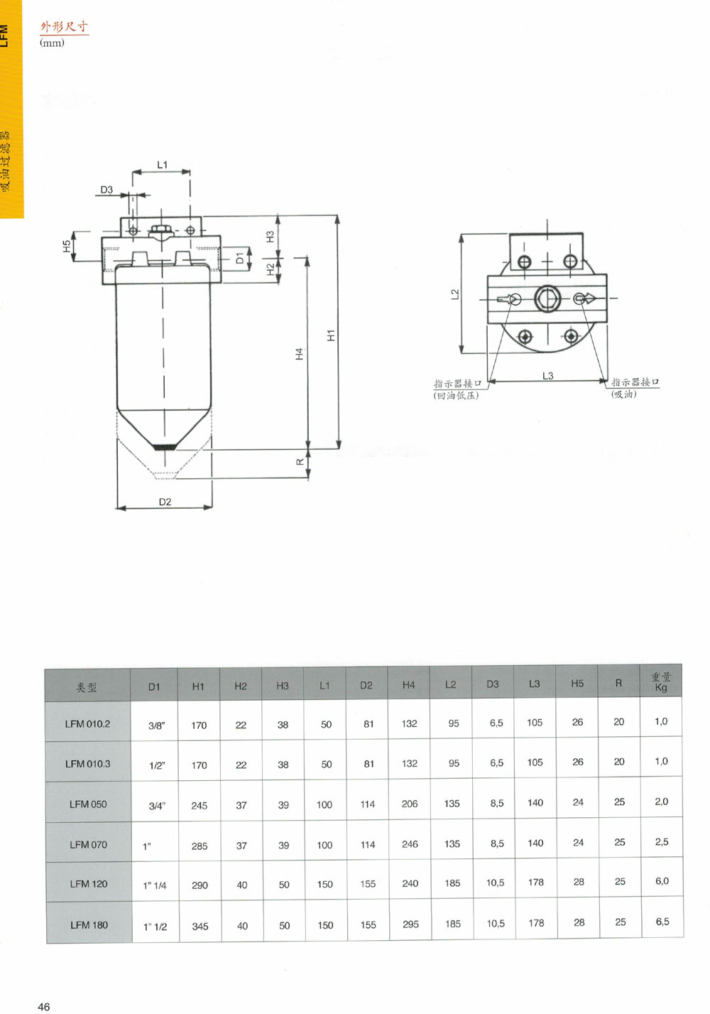索菲瑪吸油/低壓管路過濾器LFM系列 |